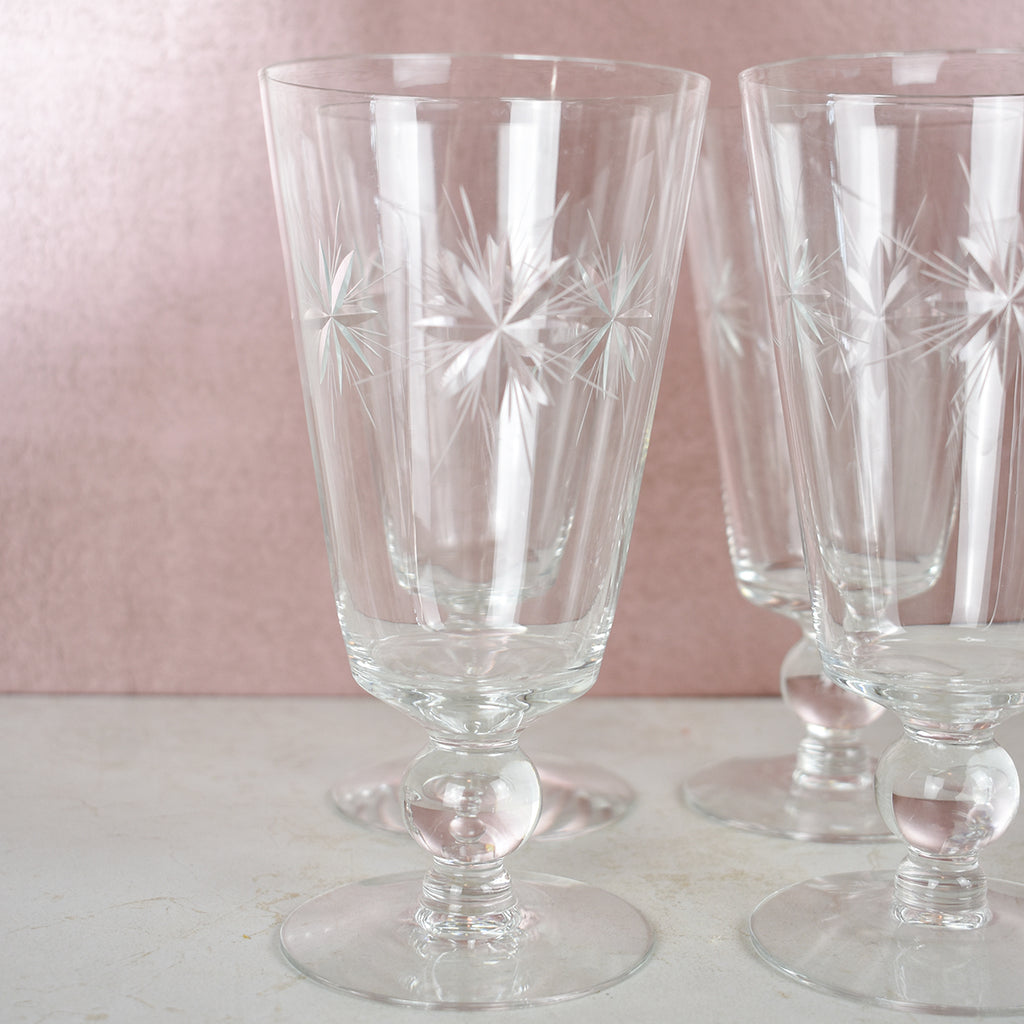 You'll feel like a queen sipping out of these crystal goblets! With a sphere sitting at the base and a stunning starburst design, these are elegant and understated. You can drink anything from wine to juice and still feel like royalty!