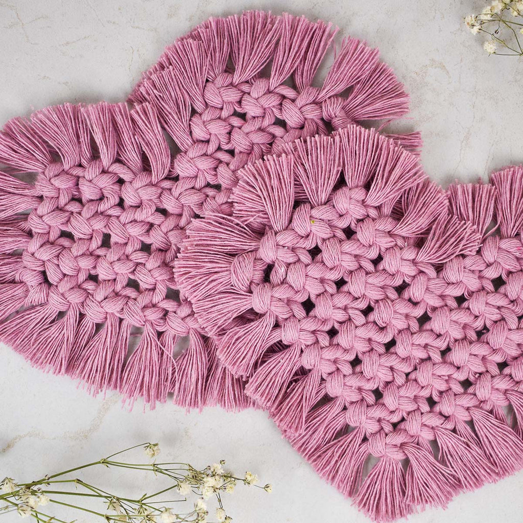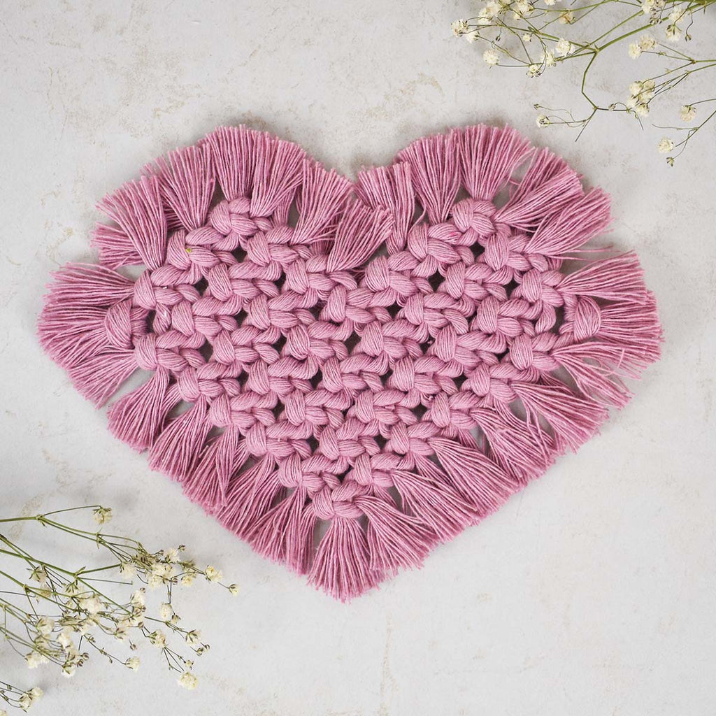 It was love at first sight with these pink macrame heart coasters! Each coaster is hand-knotted and perfect decor for Valentine's Day. Use it as a coaster to protect your table or as a candle/plant rug!