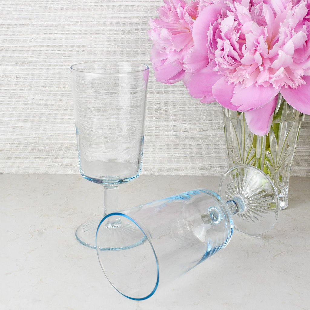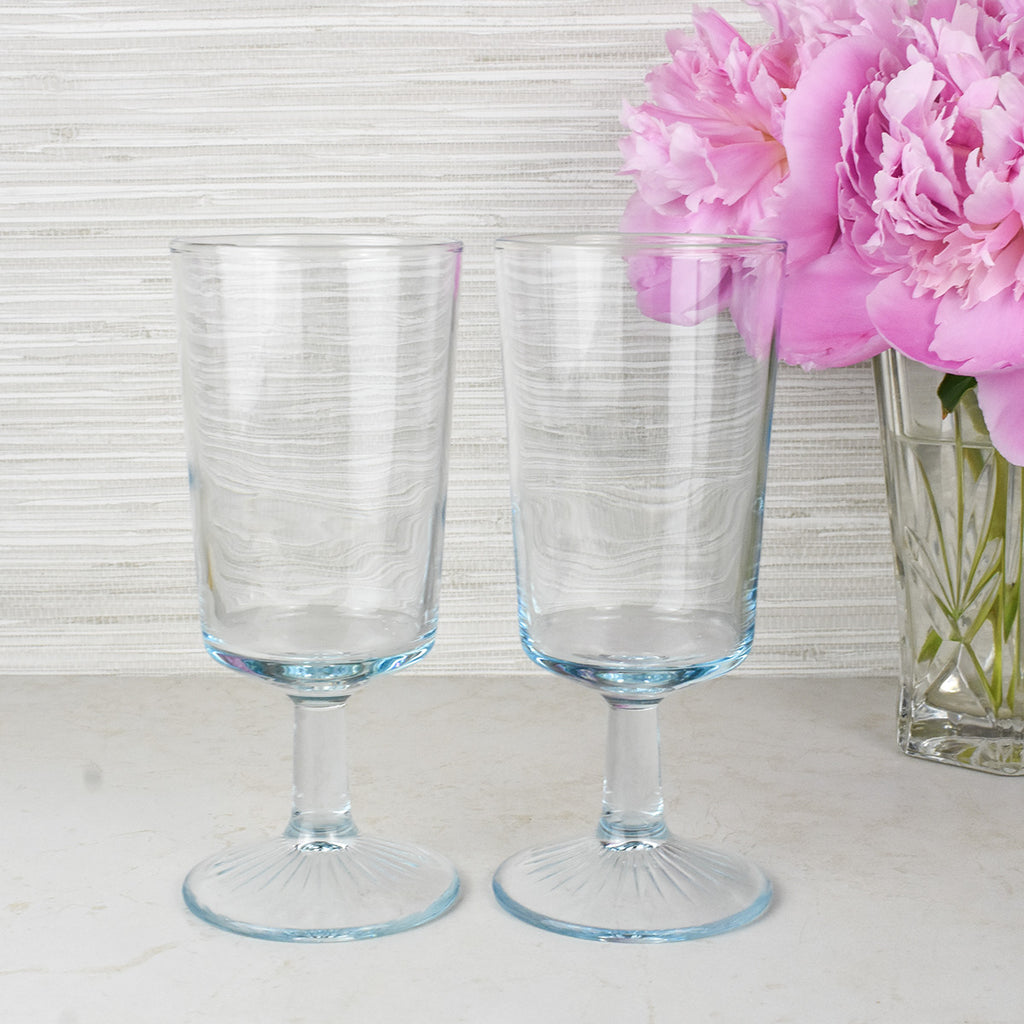 These stunning, light blue goblets give just a hint of color to your kitchenware. Blue glassware can be a rare find! Add a little touch of blue to your bar cart or kitchen shelves.