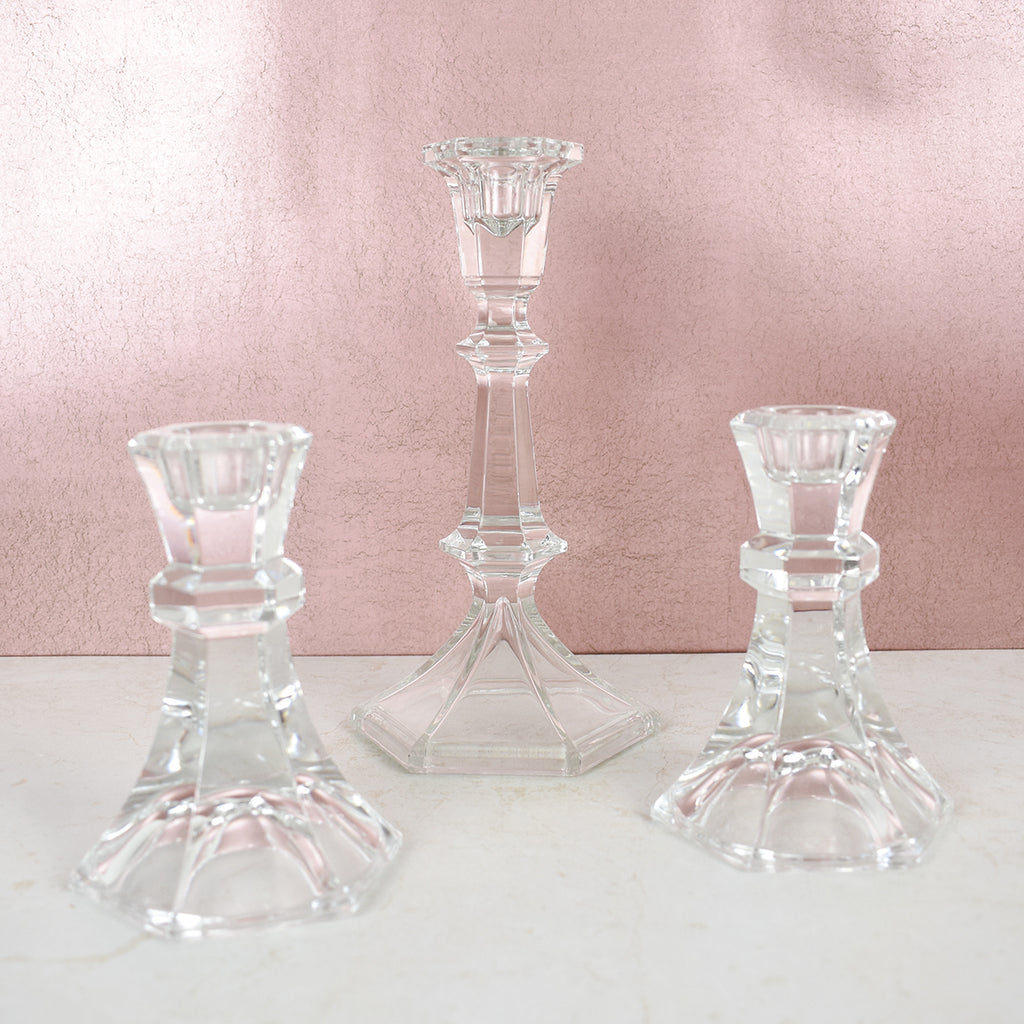 Add a touch of decadence to your mantle or tablescape with these crystal candlesticks. Whether you keep them as a trio or spread them out within your house, these candlesticks will add a touch of glam!