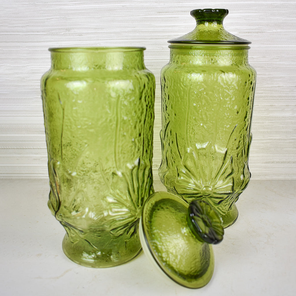 Organization has never looked so pretty! These vintage green canisters have a floral motif around their base and matching lids. Use these to store pasta, flour, etc, the options are endless! Adding these beautiful jars on your shelf will instantly transform your space.